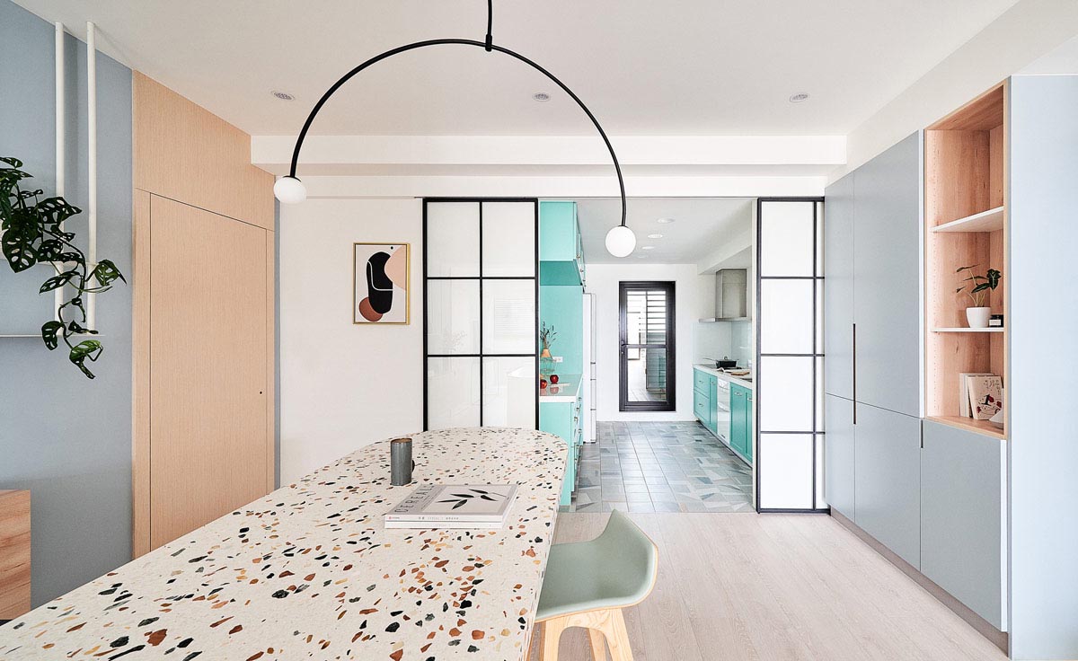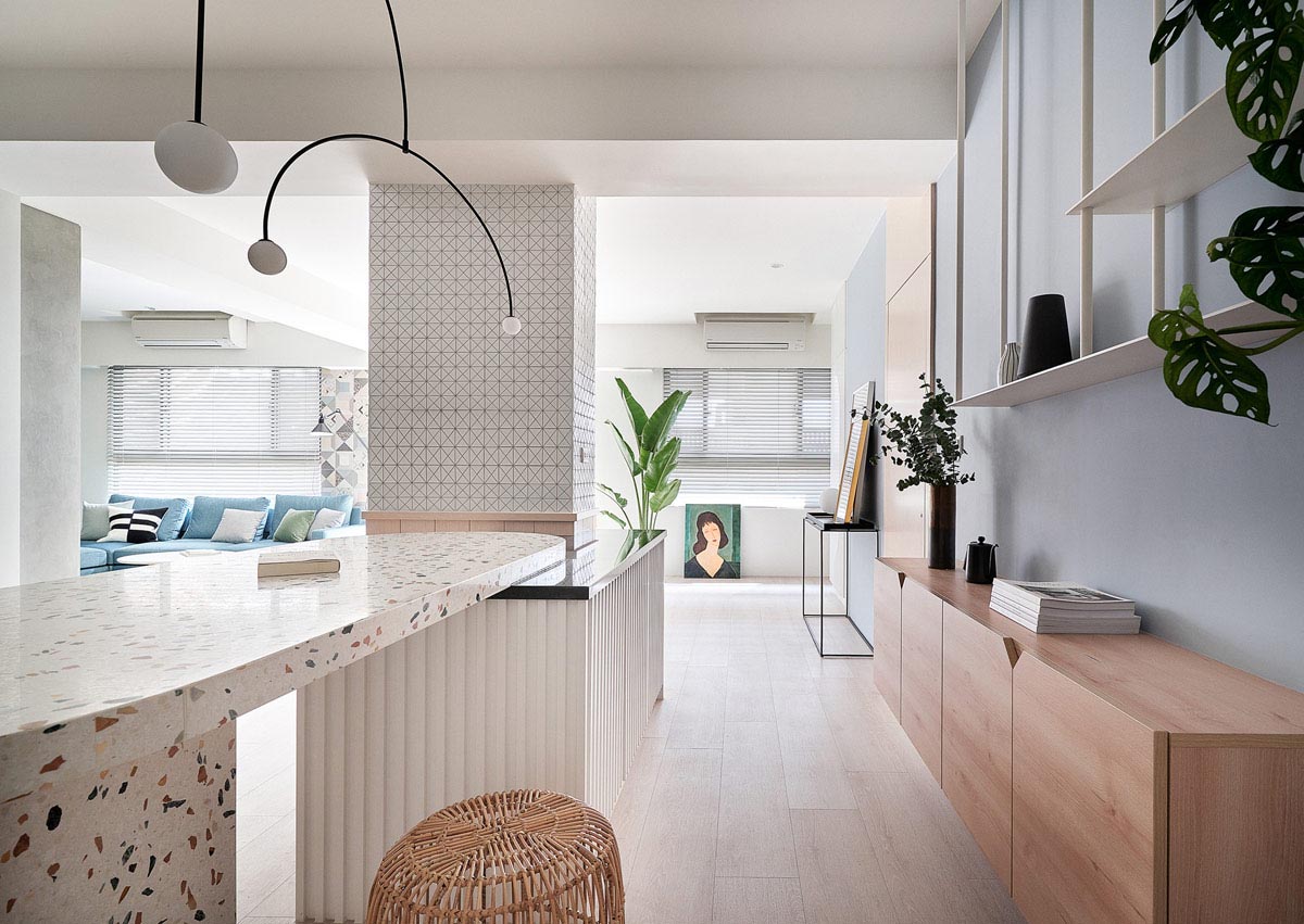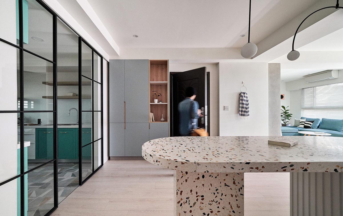주방 아일랜드는 인조석(테라조) 소재로 잘 어울립니다.
