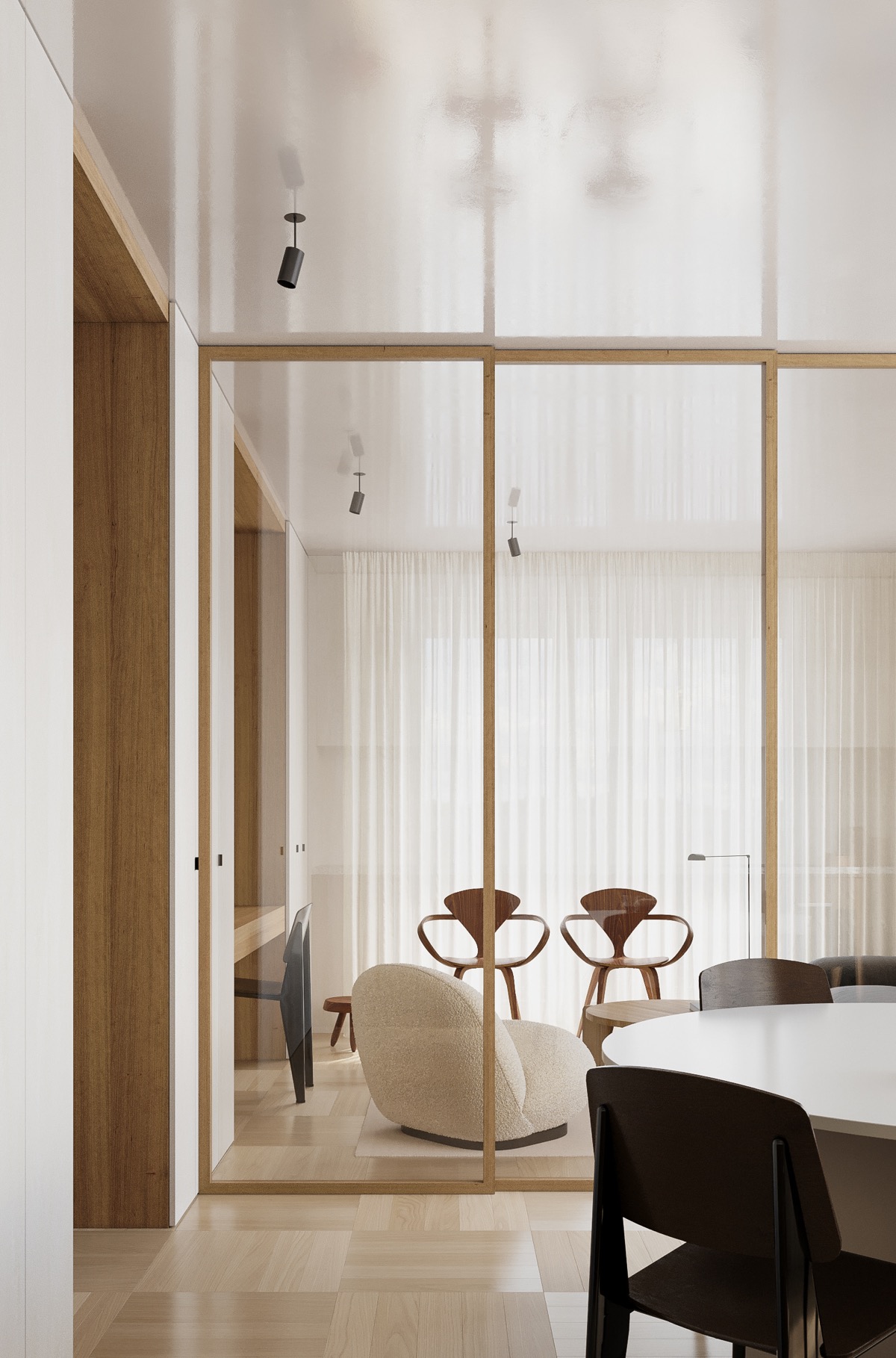 유리문으로 구획을 나눴는데 20C 중반 건축에서 자주 등장하는 요소로