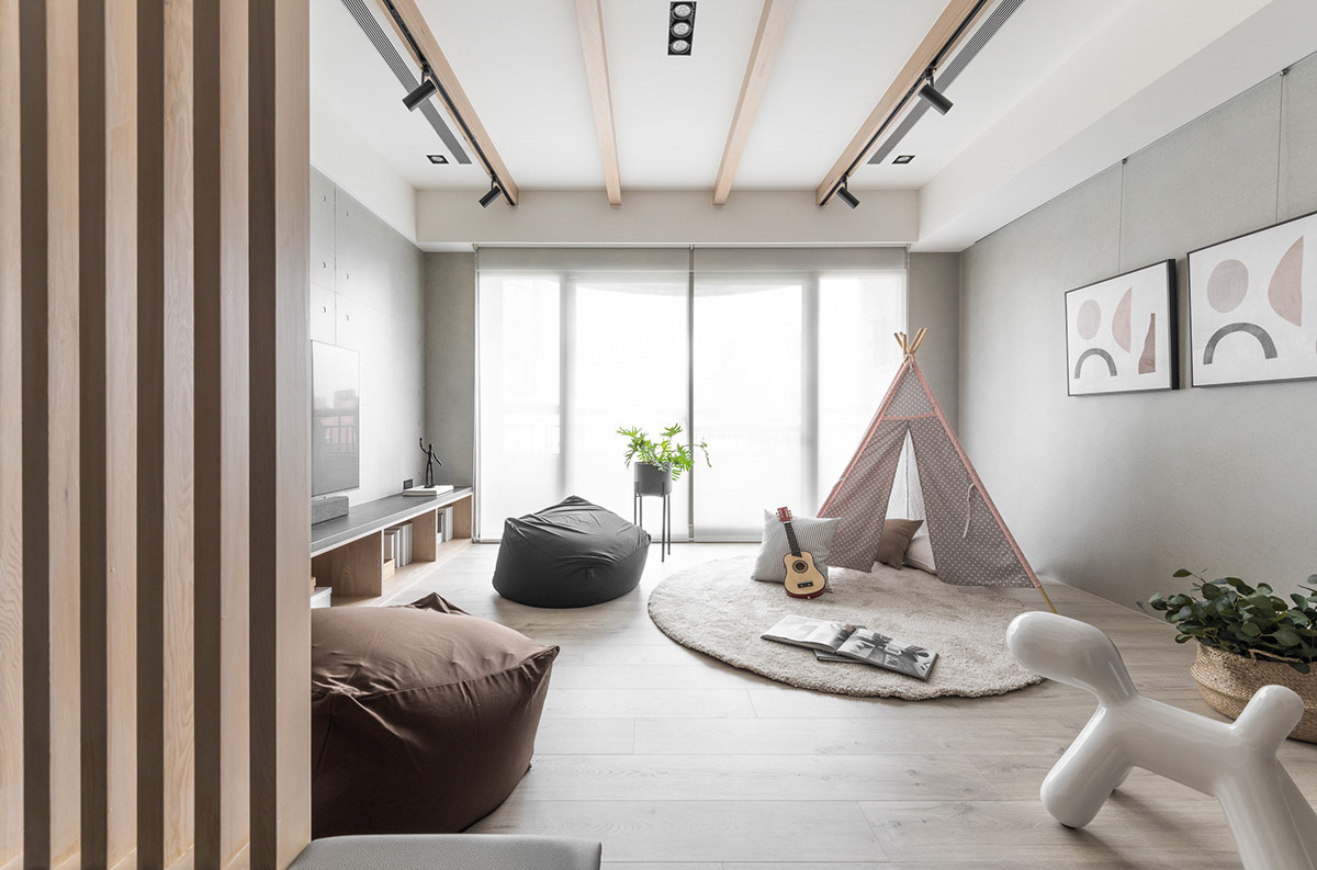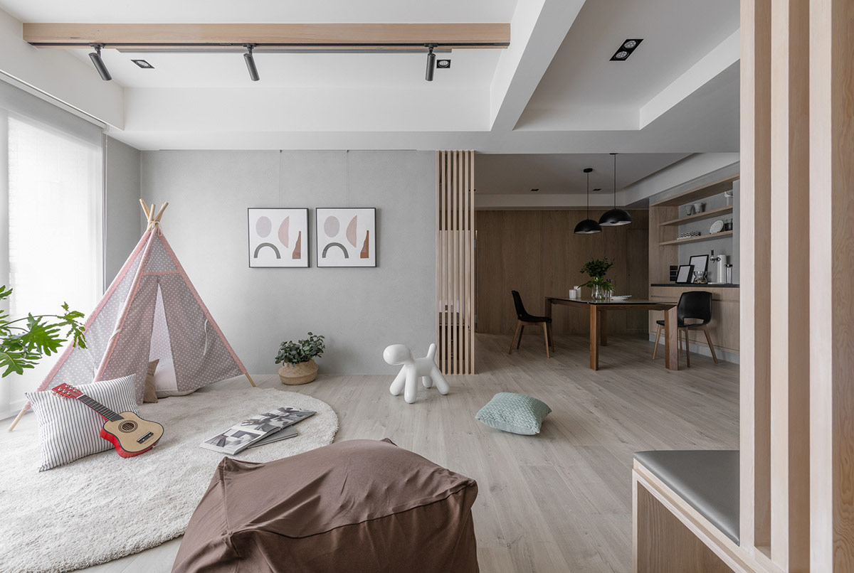 부드러운 톤의 러그는 아이와 어른의 공간을 분리해줍니다.