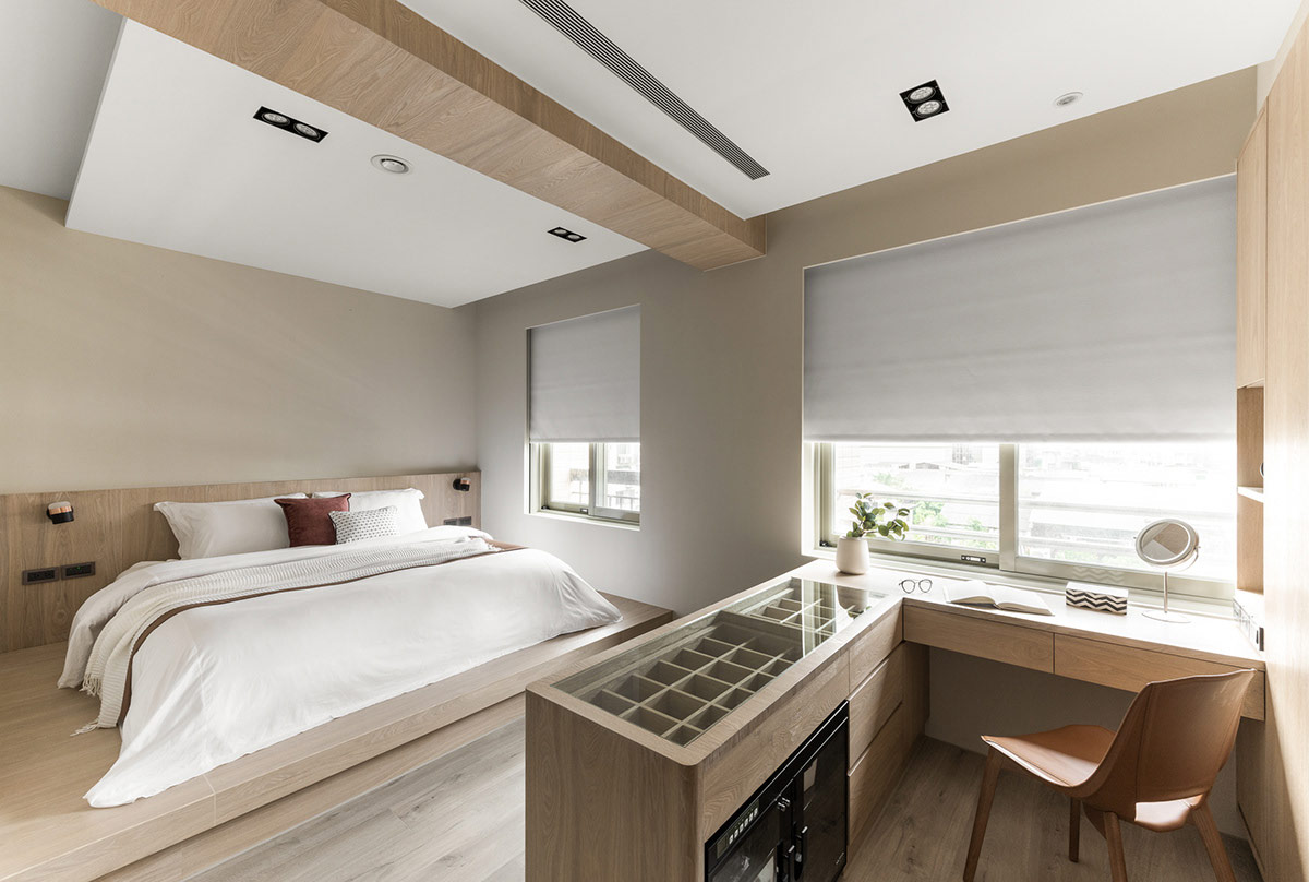 그리고 우드 컬러의 낮은 가구 배치는 안정감을 줍니다.