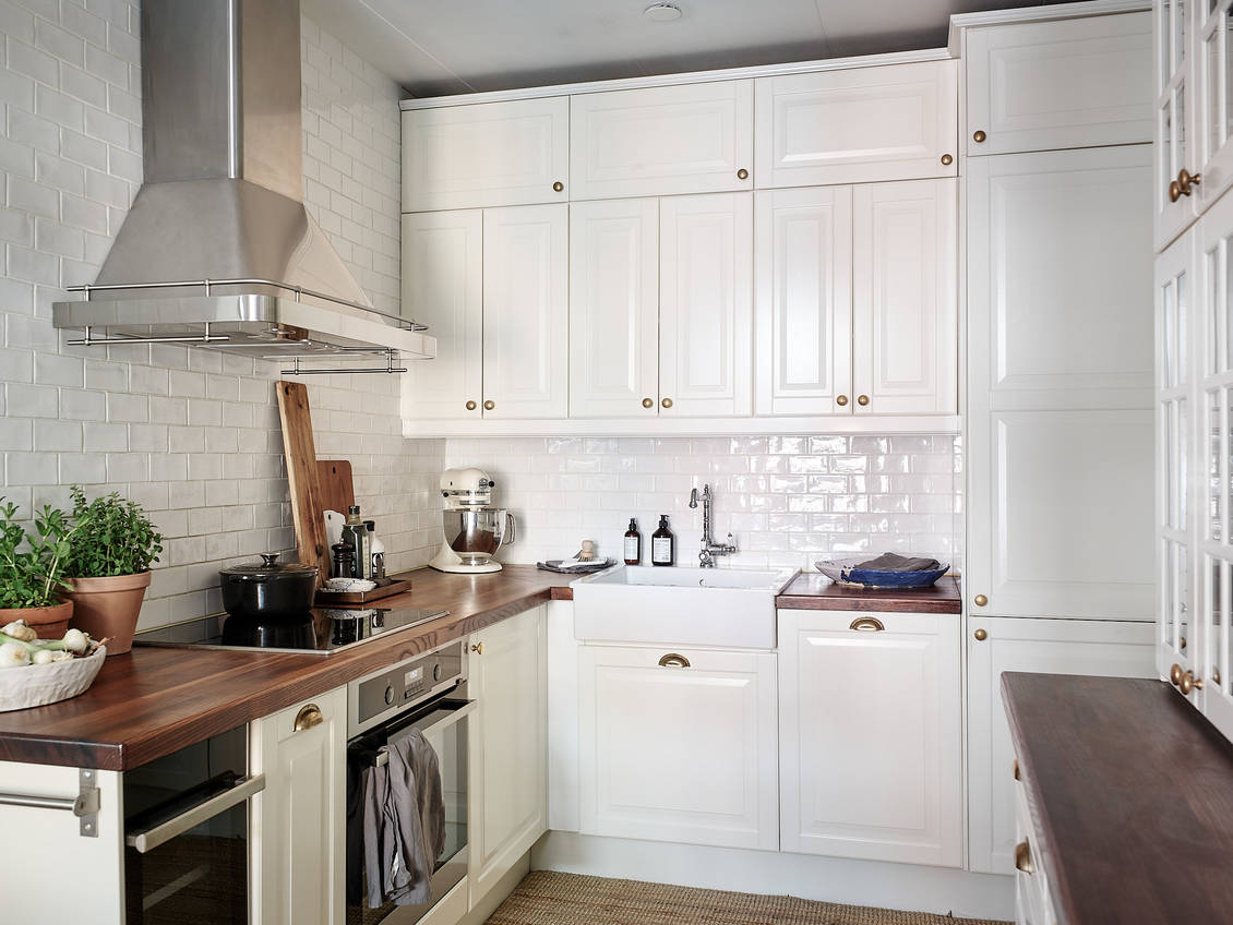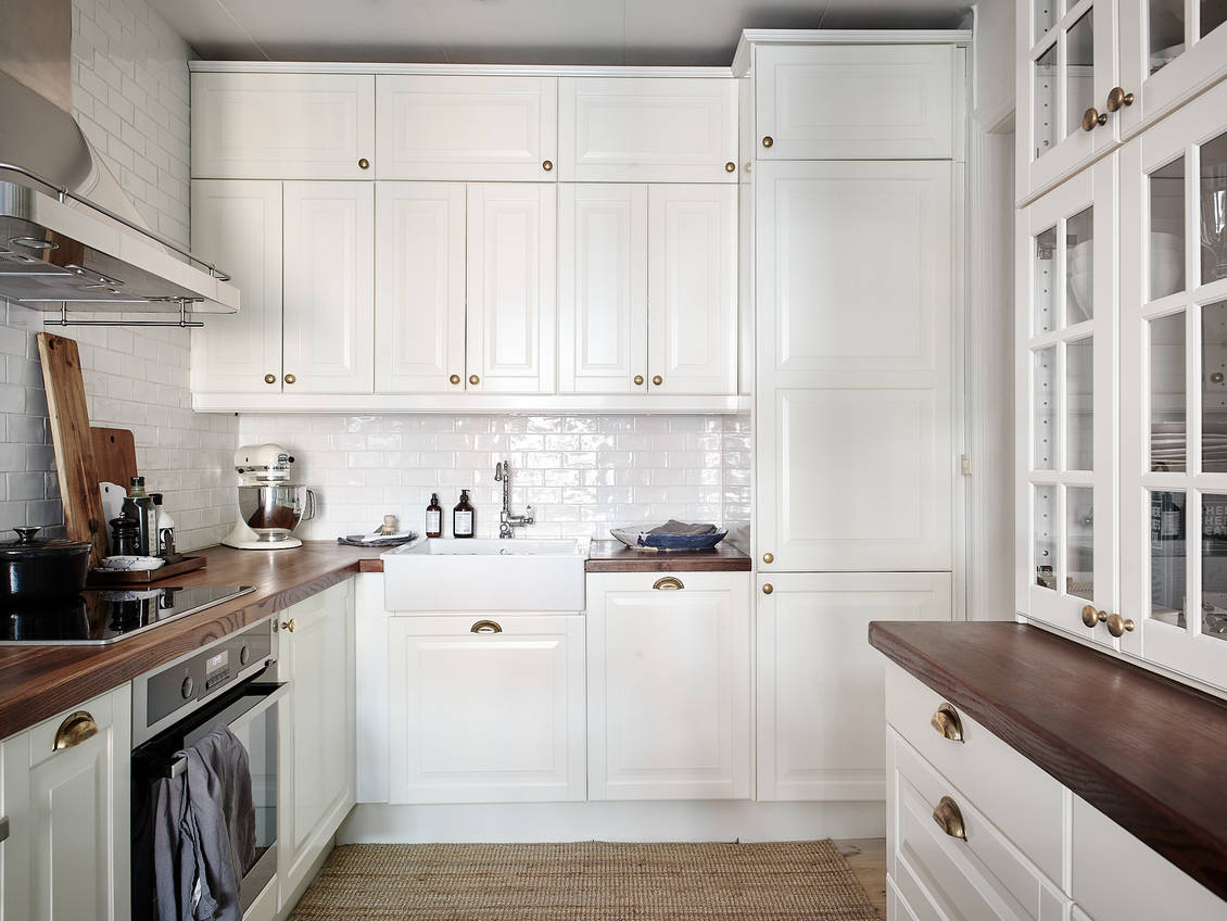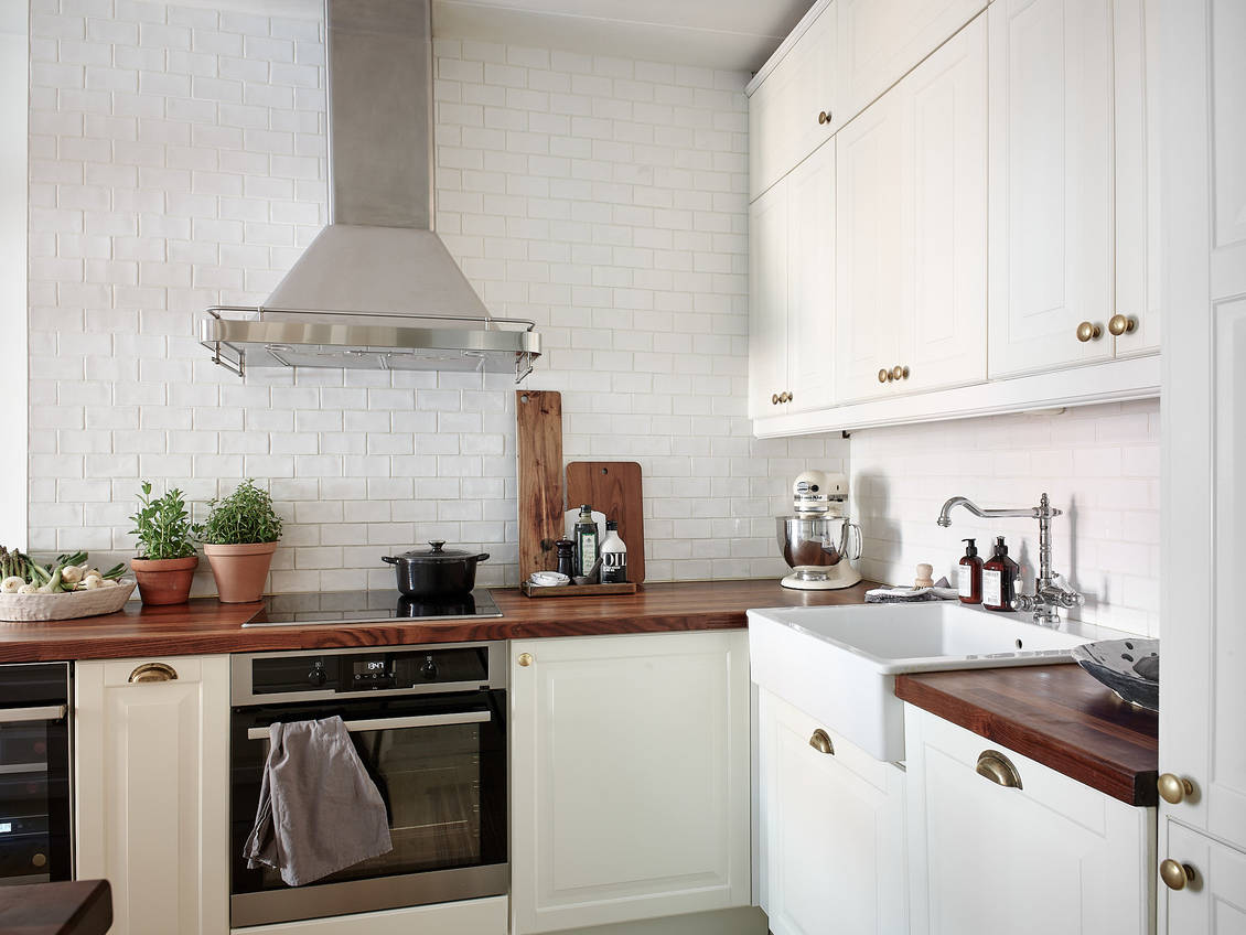주방 꾸미기 주조색을 만드는 요소로 흰색의 유광 타일이 쓰였습니다.