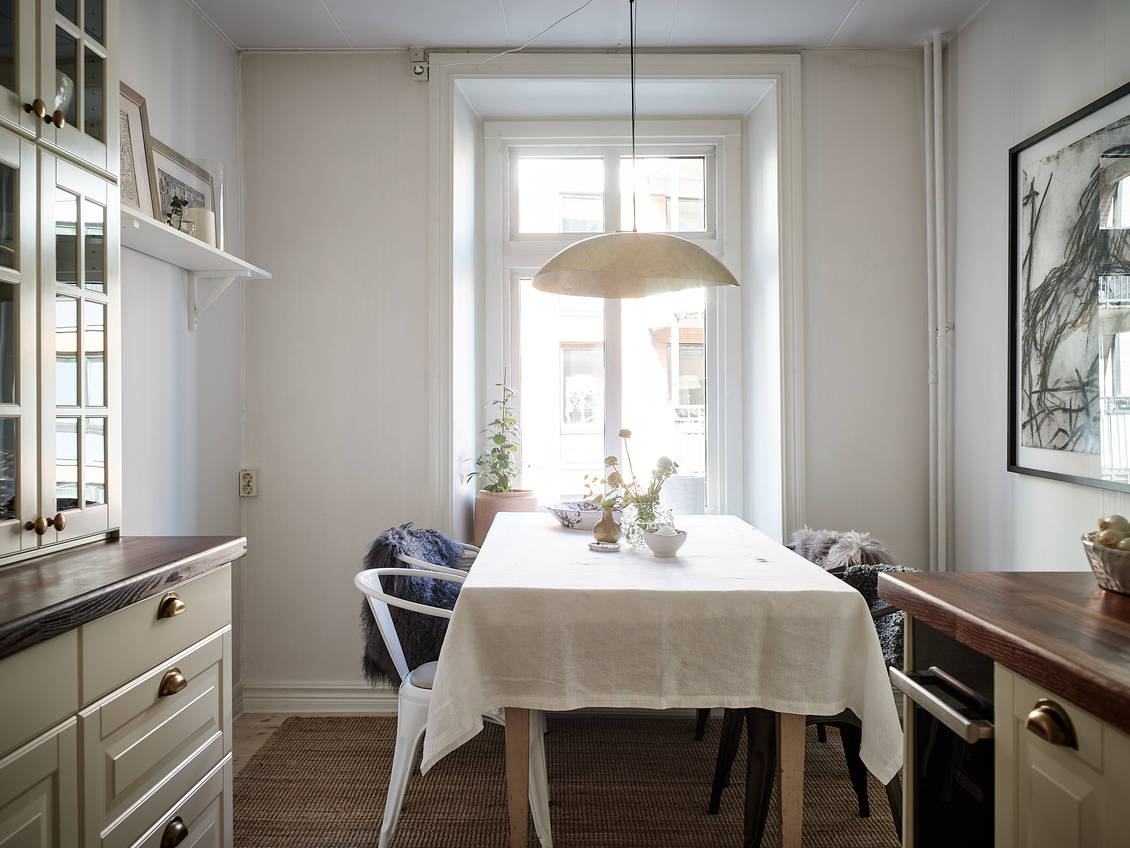 큰 창으로 밝은 햇살이 들어오는 주방 식탁은 온기를 느끼게 합니다.