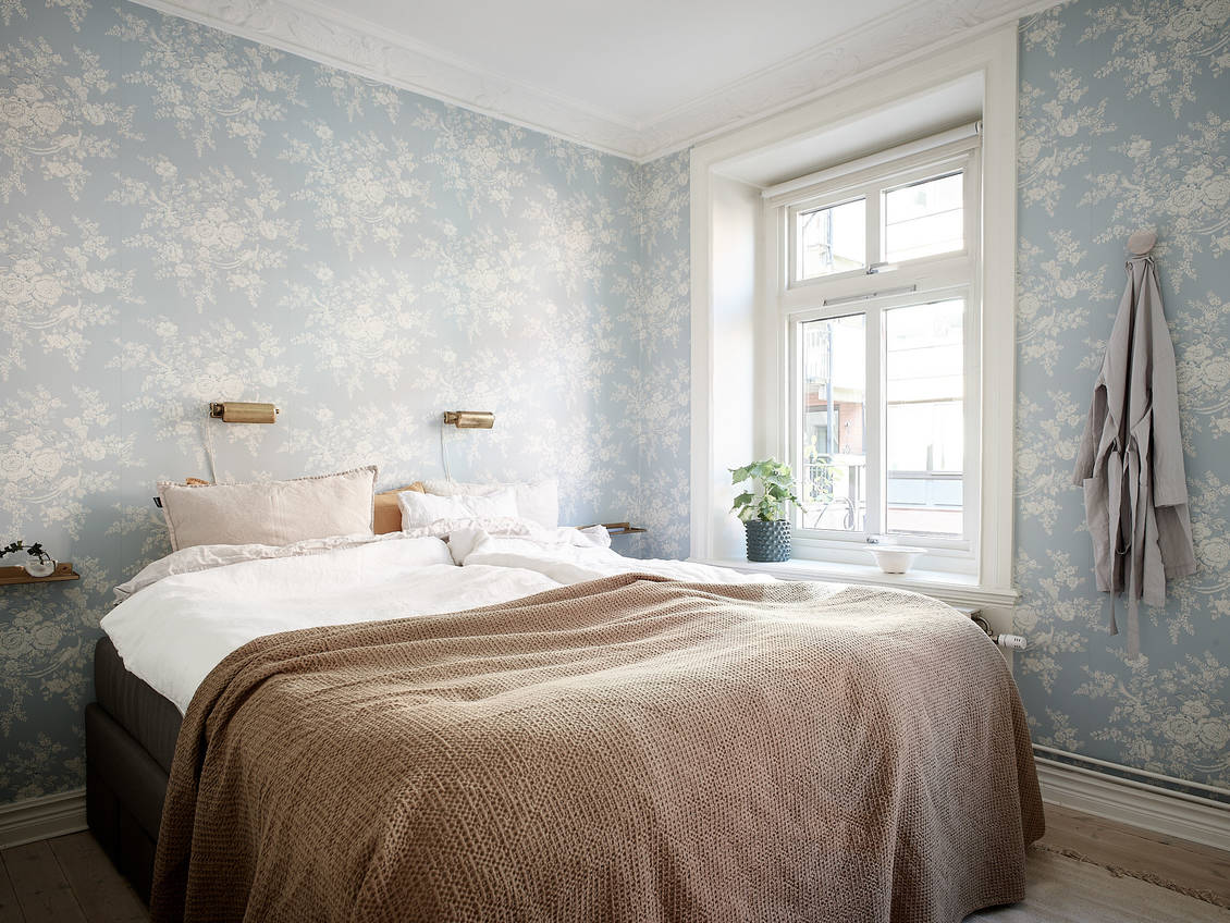 도색이 아닌 벽지를 씀으로써 침실만의 공간 분리를 위한 요소로 작용합니다.